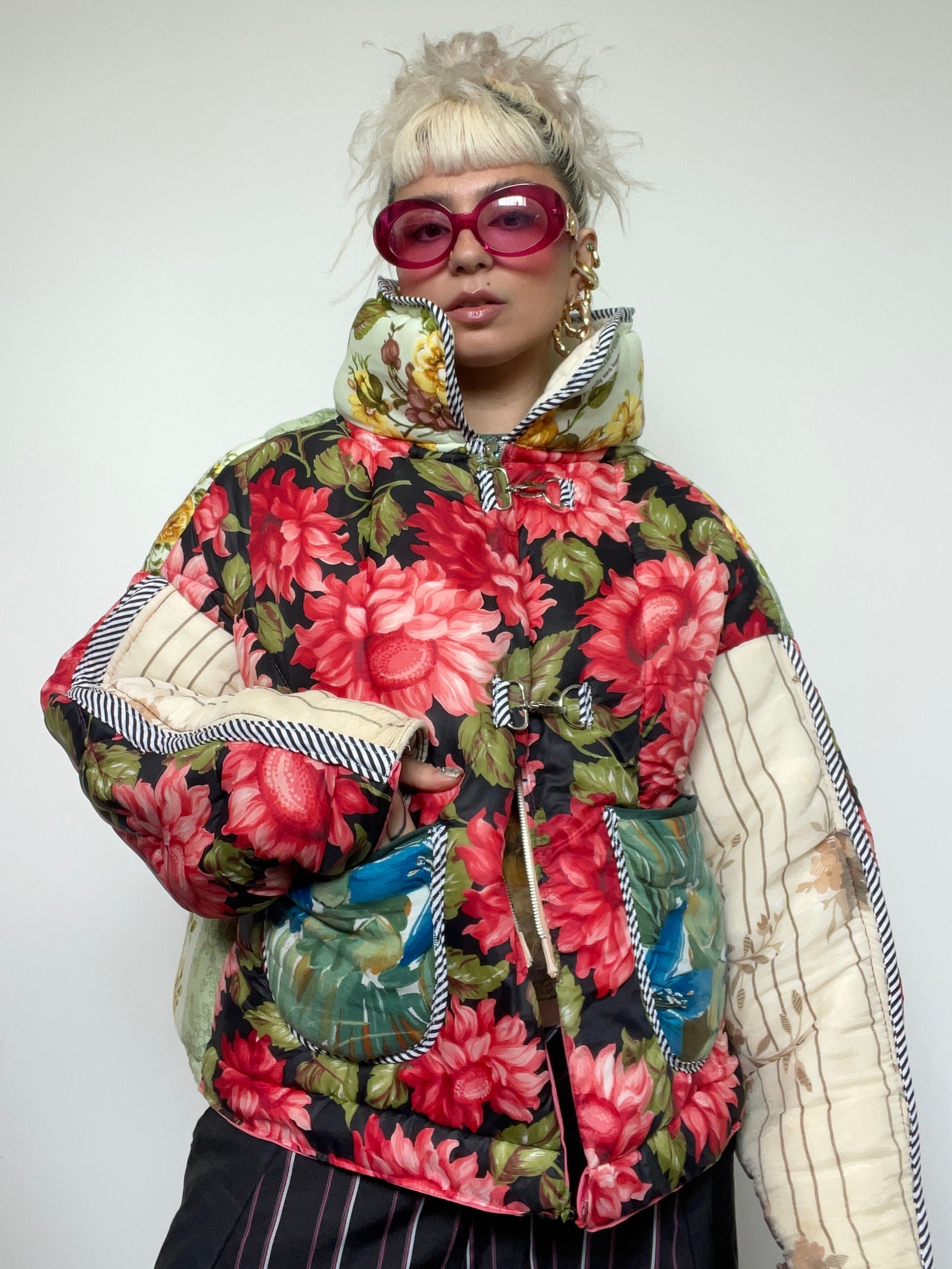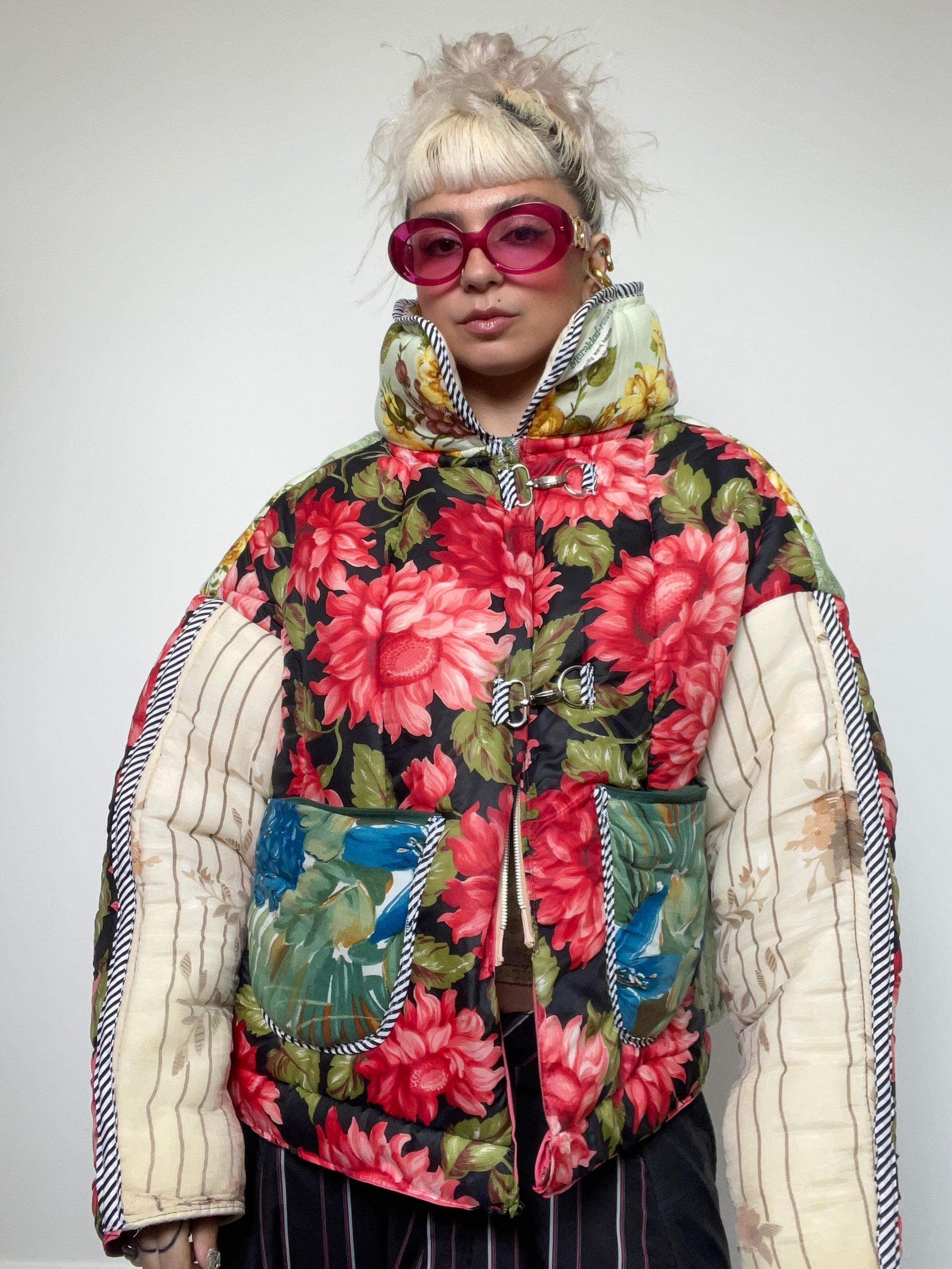 Handmade in London, this Upcycled Puffer Jacket is crafted from vintage duvets, bedspreads, and sleeping bags. Each piece is one-of-a-kind, designed for bold self-expression while being sustainable and environmentally responsible.